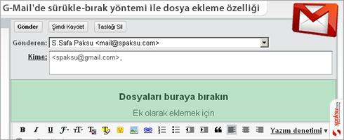 Google’ın ücretsiz mail sistemi Gmail yeni özelliklerini göstermeye devam ediyor. Yeni aktif olan Sürükle-Bırak yöntemi ile maillerinize artık istediğiniz dosya konumundan kolayca dosya eklemesi yapabileceksiniz. Normalde mailinize bir dosya eklemek için onun dosya sistemindeki yerini bulmanız gerekirdi. Özellik şuanda sadece Firefox ve Crome’da çalışıyor. Şimdi dosyanın bulunduğu klasörü açıp ekleyeceğiniz dosyayı sürükle-bırak yöntemi ile mailinize ekleyebileceksiniz. Bu sayede işiniz bir bakıma kolaylaşacak.