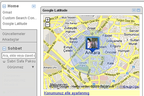 Google maps hizmeti ile ilişkilendirdiği Google latitude servisini iGoogle sayfasında Türkiye için aktifleştirdi. Daha önce iGoogle sayfasına Google Latitude gadgetini eklediğimizde “bu servis ülkenizde henüz hizmete açılmamıştır” gibi bir mesaj çıkıyordu. Ancak artık Latitude gadgeti ülkemizde aktifleştirildi. Mobil telefonunuzdan fiziksel olarak yerinizi Google maps servisinde eklediğiniz arkadaşlarınıza gösteren bir servistir. Bu demek oluyorki yakın bir zamanda Google latitude ülkemizde tamamen aktif olacak. Yazının devamında iGoogle sayfasından Google latitude görüntülerini görebilirsiniz.
