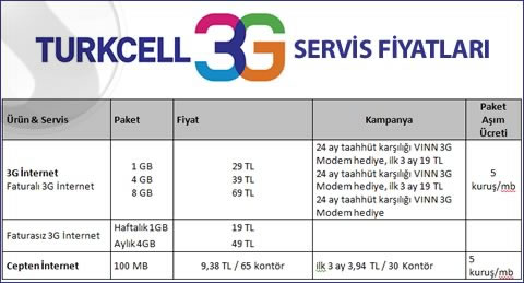 Turkcell 3G de aynı (2 yıl anlaşmalı 4 GB kotalı) fiyata geliyor ve daha hızlı düşüncesiyle gittim 2 yıl anlaşmalı 4GB kotalı paketi aldım vee 8 gün kullanımla 4 GB kotayı doldurmuşum nasıl oldu anlamadım. 6 senede ADSL ile dolduramadığım Aylık 4 GB lık kotayı 8 GÜNDE DOLDURMUŞUM. Bunun üzerine bir yanlışlık vardır herhalde diye turkcell müşteri hizmetlerini aradım fakat biri öbürüne aktarıyor öteki berikine neyse tam 1 saat 28 dakikanın sonunda bir kişiye bağladılar beni. O da sistem çok yavaş ekranım şu anda açılmıyor cevabını verdi. DİYECEĞİM ŞU Kİ; REKLAMLARA KANMAYALIM, ALDATILMAYALIM.