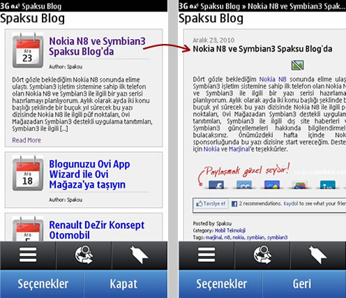 Yapmanız gereken tek şey eklentiyi “plugin” indirerek wordpress blogunuza kurmak. Şahsen kullandığım WP Mobile Detector eklentisi sayesinde cepten girdiğim zaman Spaksu Blog aşağıda gördüğünüz gibi bir hal alıyor. Eklenti’de birden fazla tema seçeneği mevcut ve tabi biraz kod bilginiz varsa bu mobil temaları istediğiniz gibi şekillendirebilirsiniz.